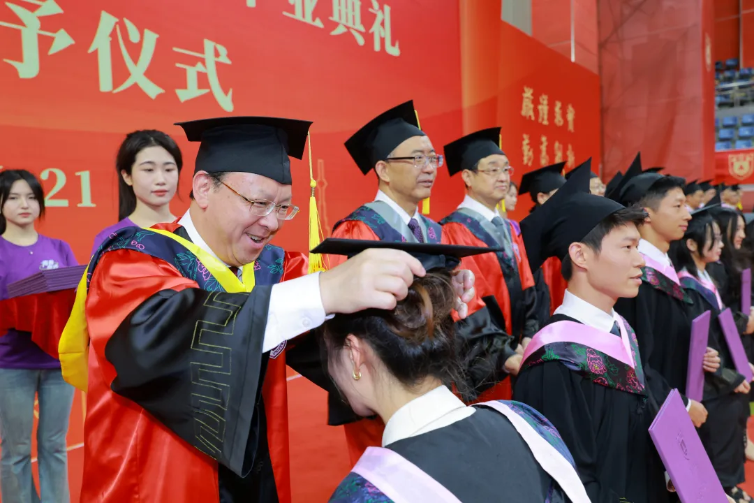 Subsequently, university leaders, Academicians of the CAS, members of the University Degree Evaluation Committee, college leaders, and College Degree Evaluation Committee members conferred degree certificates and adjusted tassels for bachelor's degree recipients.